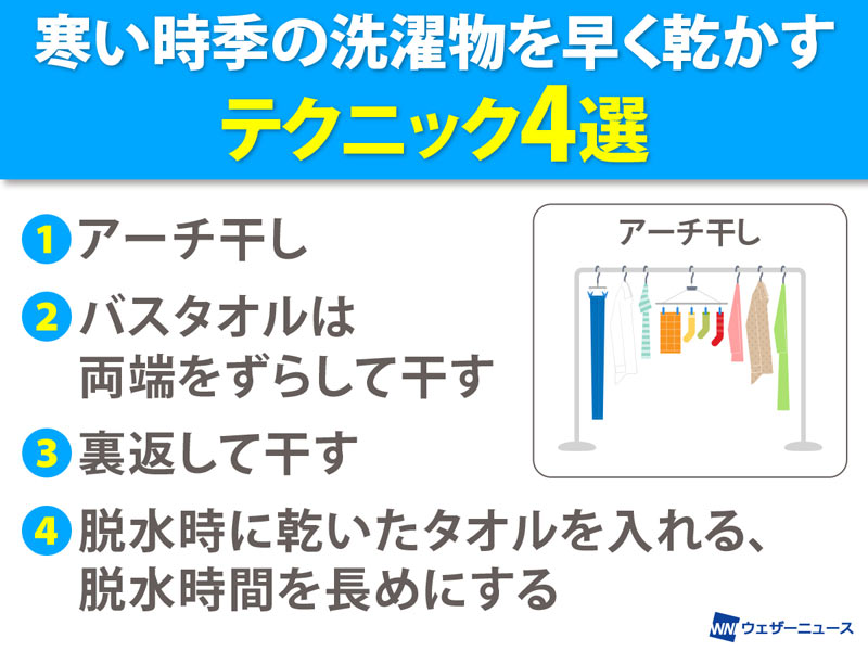 気象予報会社のウェザーニュースさんのトピックス 「寒い時季の洗濯物を早く乾かすテクニック4選